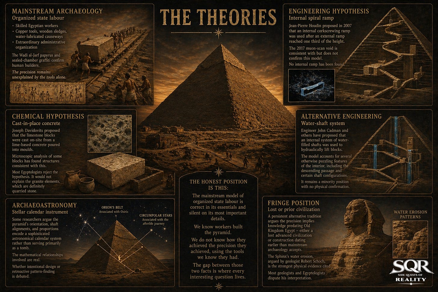 The honest position is this: the mainstream model of organized state labour is correct in its essentials and silent on its most important details. We know workers built the pyramid. We do not know how they achieved the precision they achieved, using the tools we know they had. The gap between those two facts is where every interesting question lives.