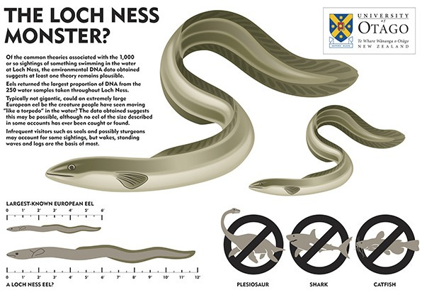 Professor Gemmell noted that he could not rule out the possibility of eels of extreme size, though none had been found or caught. He acknowledged that the large amount of eel DNA might simply reflect a very large population of ordinary-sized eels. He added, carefully: a lack of evidence is not necessarily evidence of absence.