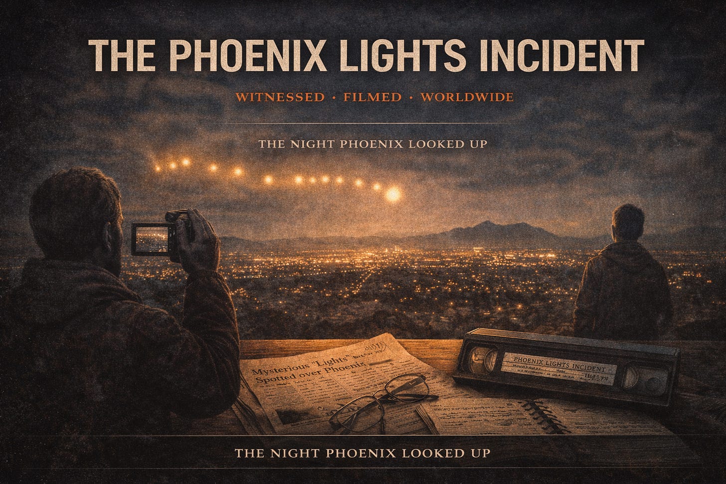 Not a small thing misidentified. Something enormous, moving slowly over one of the largest cities in the American Southwest, seen by thousands of people who had no contact with each other and no opportunity to coordinate their descriptions before giving them.